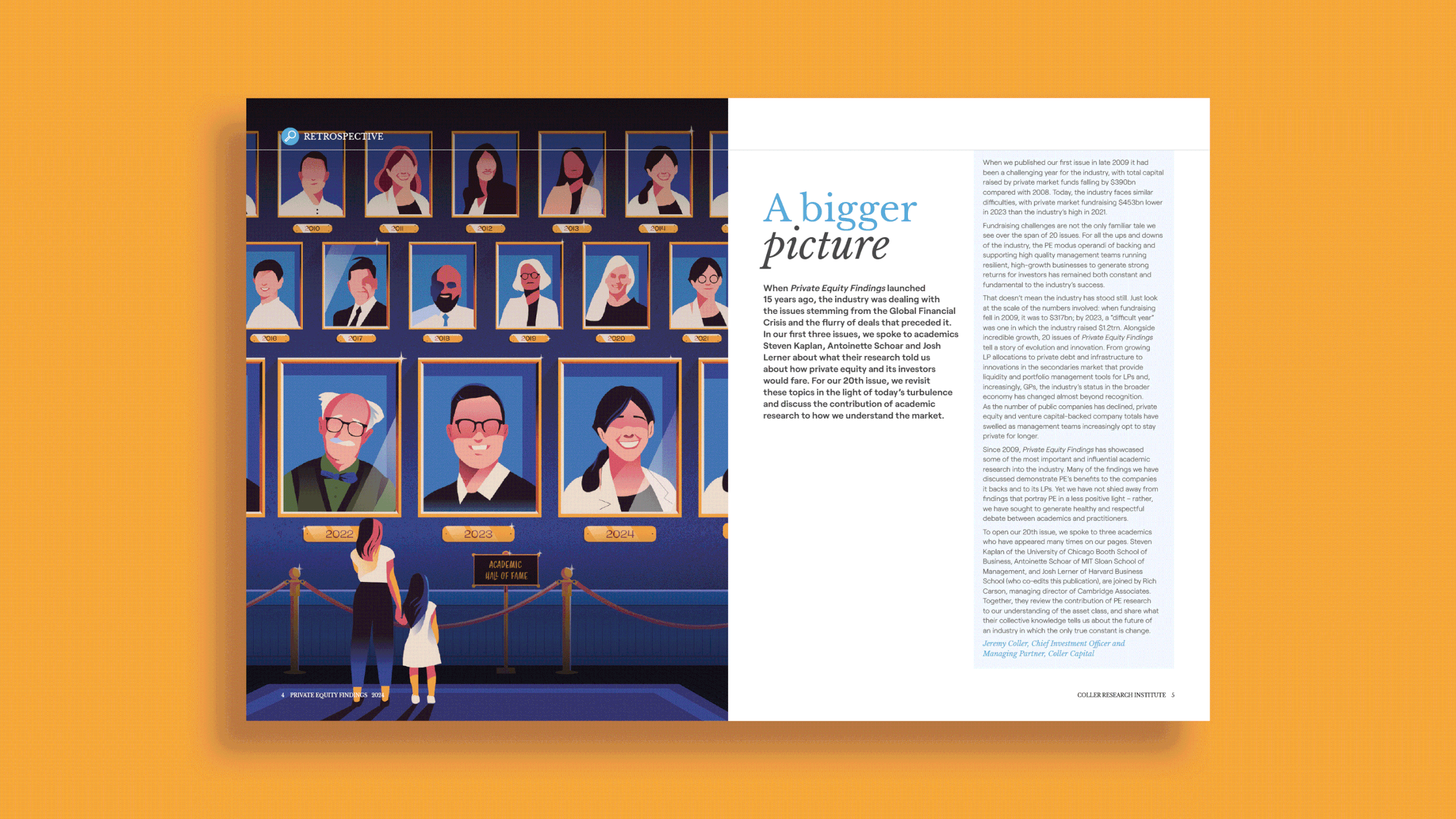 Four unique drawings created specifically for Coller Capital's well-known magazine "Private Equity Findings" skillfully blend creative style with expert industry understanding. These engaging images boost visual appeal and offer a new, insightful perspective on the topics covered.