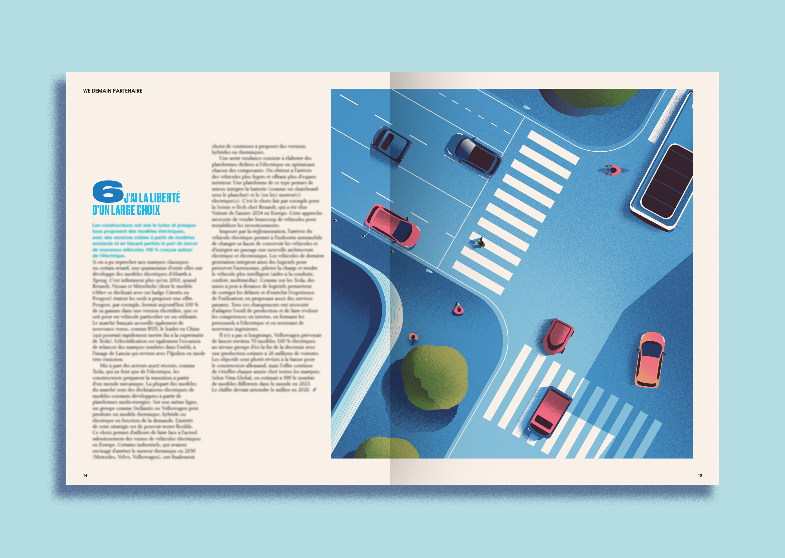 À l’occasion du salon de l’Automobile 2024, j’ai eu le grand plaisir de collaborer avec l'équipe de We Demain sur une série d’illustrations autour de la voiture électrique et de ses nombreux usages innovants. Cette expérience m'a permis d'explorer divers aspects de cette technologie durable et de ses impacts sur notre quotidien.
